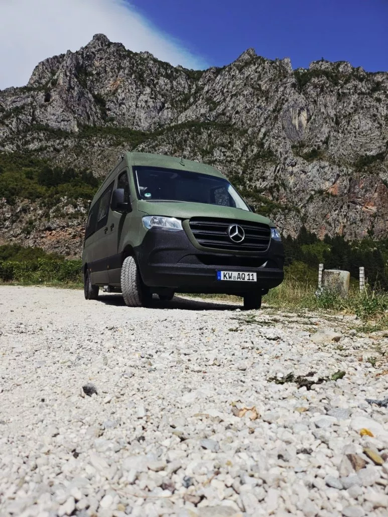 Manchmal braucht es gar nicht viel, um glücklich zu sein – nur zwei Schlafplätze, einen vollen Tank und ein bisschen Fernweh. Und genau dafür ist Jade gemacht. Unser Mercedes Sprinter ist kompakt genug, um durch kleine Orte und enge Straßen zu kommen, und gleichzeitig komfortabel wie ein kleines Zuhause.